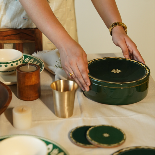 Explore our newest Collection : Tarangan, Inspired by the serene beauty of star-studded sky. Bring celestial wonders into your dining experience with our dinnerware , made in small batches with unique design and premium stoneware.
